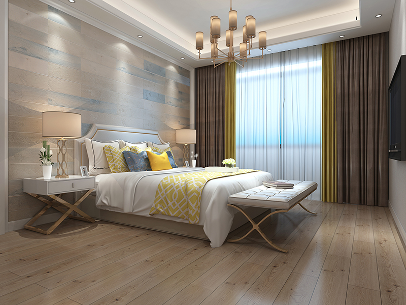 臥室的功能主要是睡眠休息,屬私人空間,不向客人開放,所以臥室裝修不必有過多的造型,通常也不需吊頂,墻壁的處理越簡潔越好,通常刷乳膠漆即可,床頭上的墻壁可適當做點造型和點綴。臥室的壁飾不宜過多,還應與墻壁材料和家具搭配得當。臥室的風格與情調主要不是由墻、地、頂等硬裝修來決定的,而是由窗簾、床罩、衣櫥等軟裝飾決定的,它們面積很大,它們的圖案、色彩往往主宰了臥室的格調,成為臥室的主旋律。