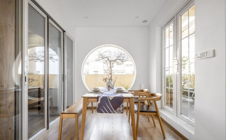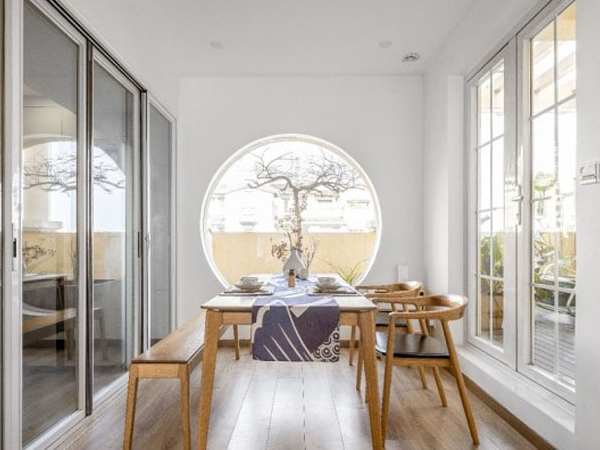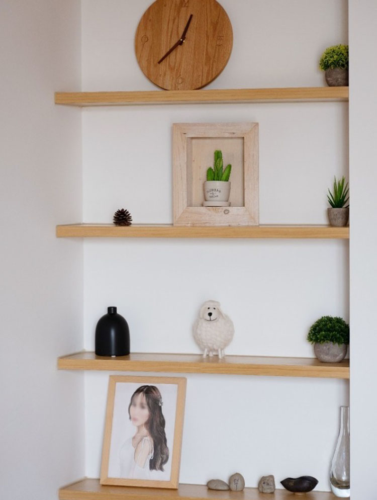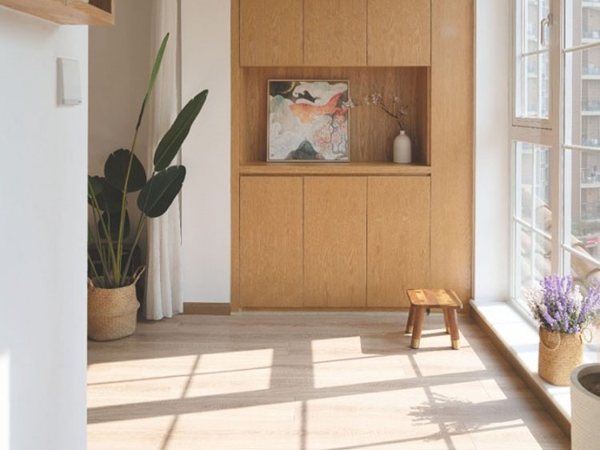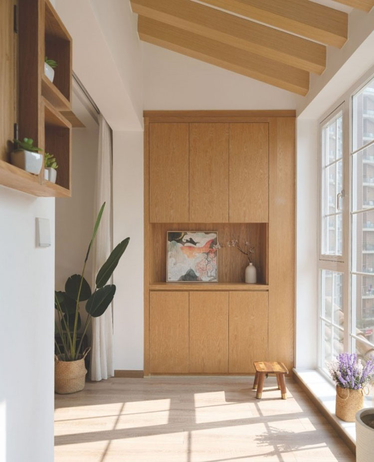 入口鞋柜部分為保留原有窗戶采光,進門處放置了低矮的鞋柜,可以更換當季鞋子,原處鞋柜既可放置鞋又可為玄關景。