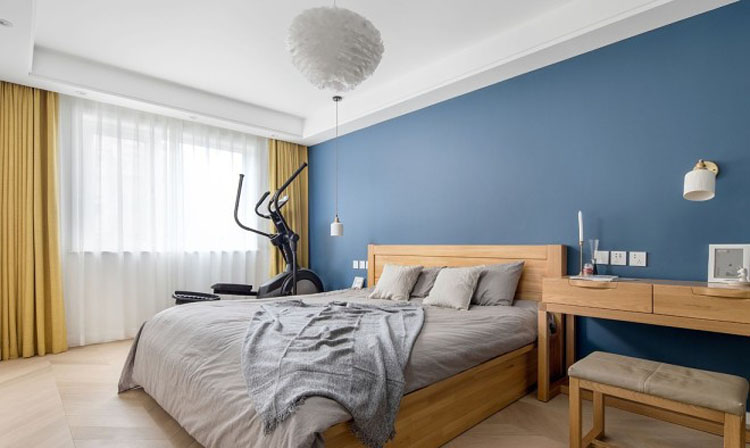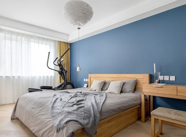 男女業有在家健身的習慣,在床的旁邊預留了跑步機的位置。