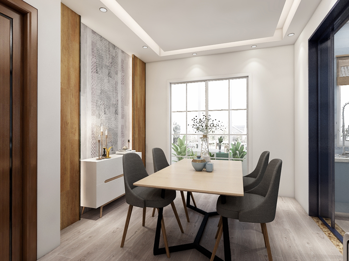 玄關的地板也是采用(MOH24936123)(YS1822A),保證了與客廳餐廳的色調統一。